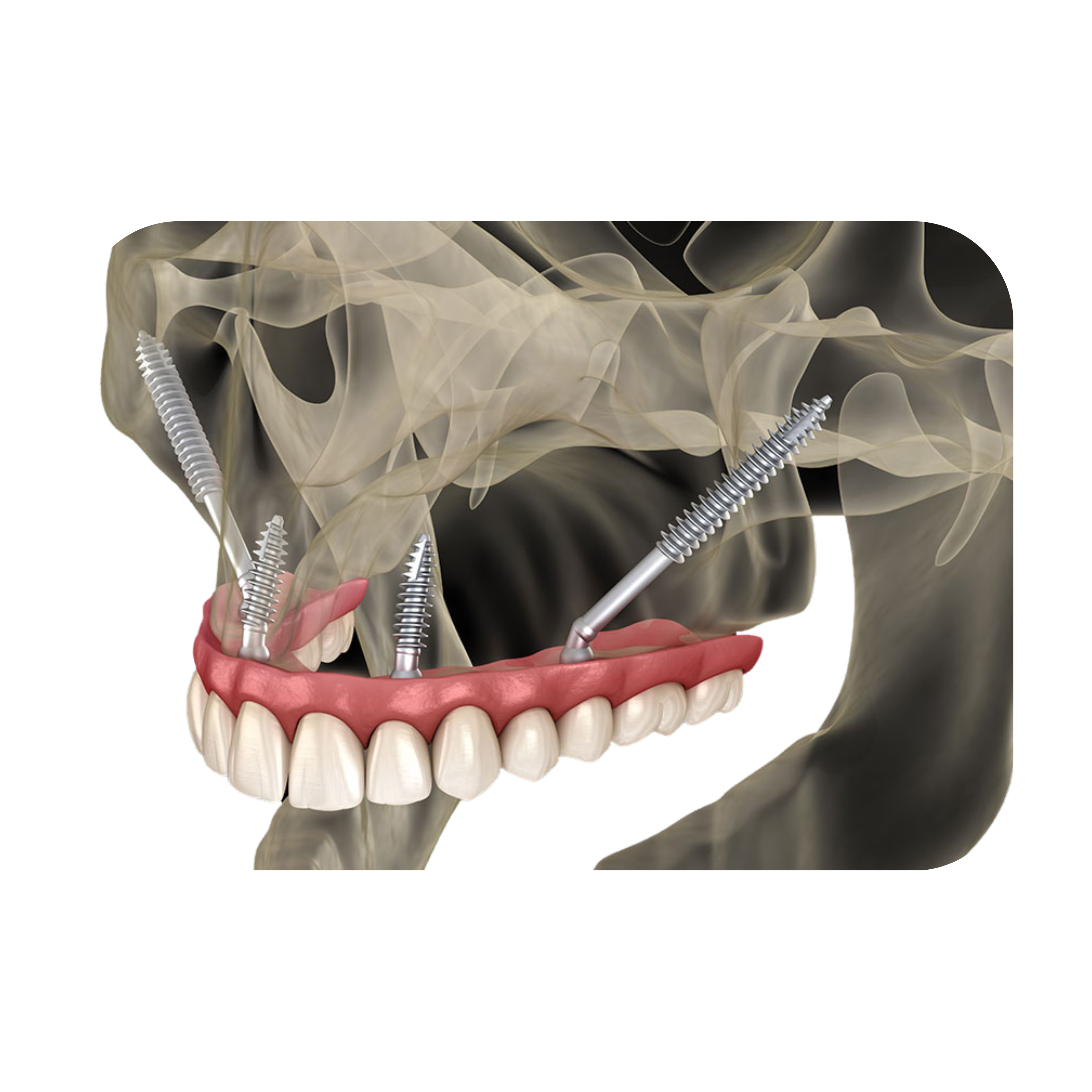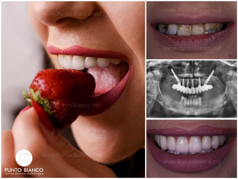 Nu vă chinuim cu 2 sau 3 operații – facem totul într-una! Extracțiile, inserarea implanturilor și amprentele se realizează într-o singură intervenție. Iar în câteva ore sau cel târziu a doua zi primiți primul set de dinți ficși. Peste 6 luni, înlocuim dinții provizorii cu cei din zirconiu – mai estetici și mai rezistenți.